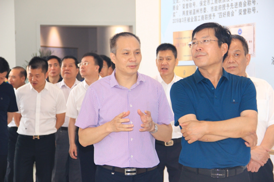 2019年7月9日下午,由保定市政協(xié)副主席、黨組副書記赤光明帶隊(duì),市人民政府黨組成員、秘書長、機(jī)關(guān)黨組書記王保輝,保定市政協(xié)副主席、望都縣委書記朱子強(qiáng),望都縣政府常務(wù)副縣長楊保軍,省第七督導(dǎo)組,各縣(市、區(qū))黨政主要負(fù)責(zé)人,市大督查辦、市發(fā)改委、市自然資源和規(guī)劃局、市生態(tài)環(huán)境局、市行政審批局、市統(tǒng)計局、市商務(wù)局、市地方金融監(jiān)管局主要負(fù)責(zé)人,文投公司主要負(fù)責(zé)人,來到浙商·和谷國際智能港觀摩調(diào)研。縣相關(guān)部門負(fù)責(zé)人及保定浙江商會領(lǐng)導(dǎo)參加了此次觀摩活動。